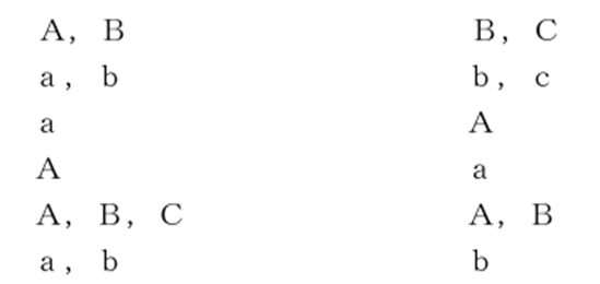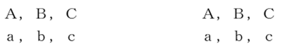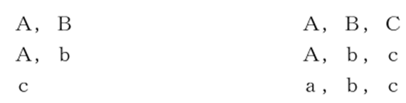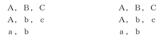 ※右側が先願・先登録に係る引用商標の指定商品又は指定役務で、左側が後願に係る本願商標の指定商品又は指定役務を表したものです。また、アルファベットの大文字は包括表示を表し、小文字は個別表示(大文字で表したものに包含される表示)を表したものになります。以下同様。